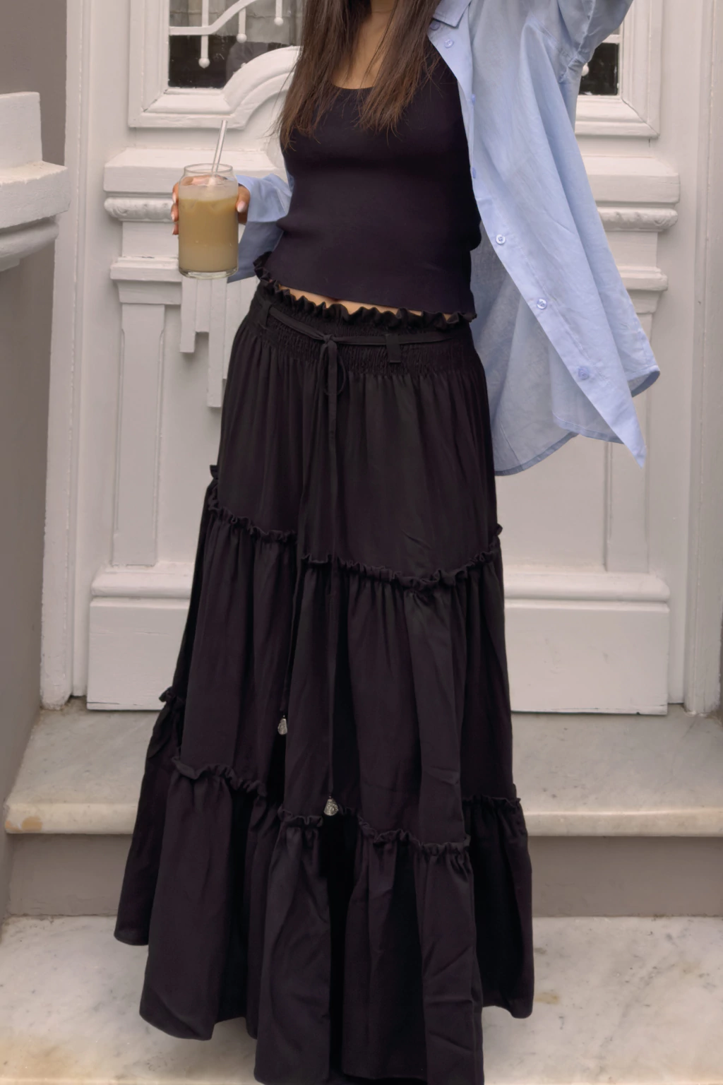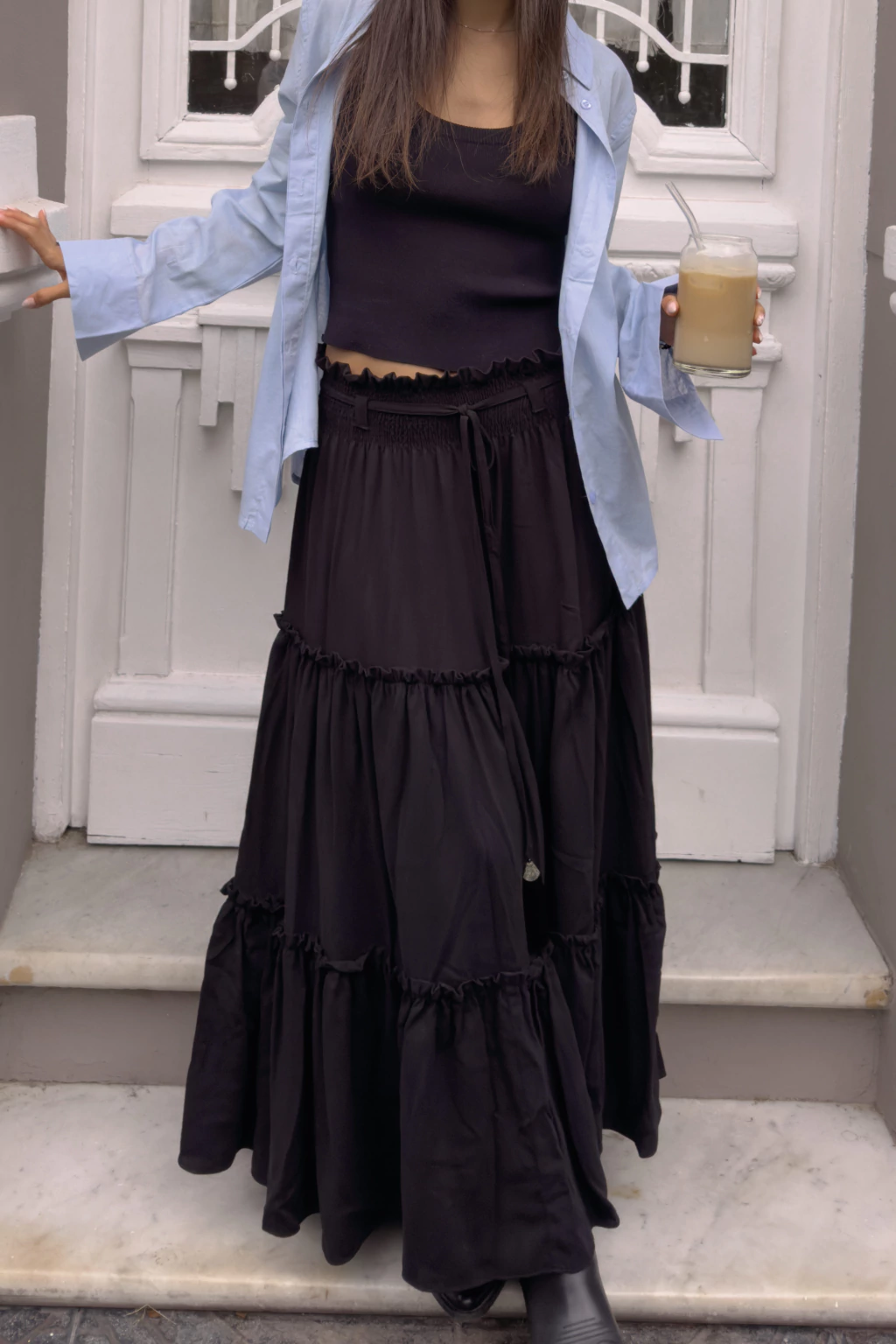 Pollera larga con 3 uniones. Cintura con hilo elástico para que puedas calzarla a la altura que más cómoda te quede!