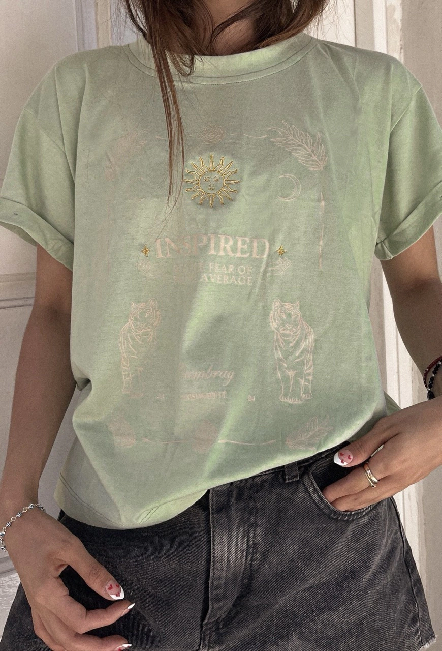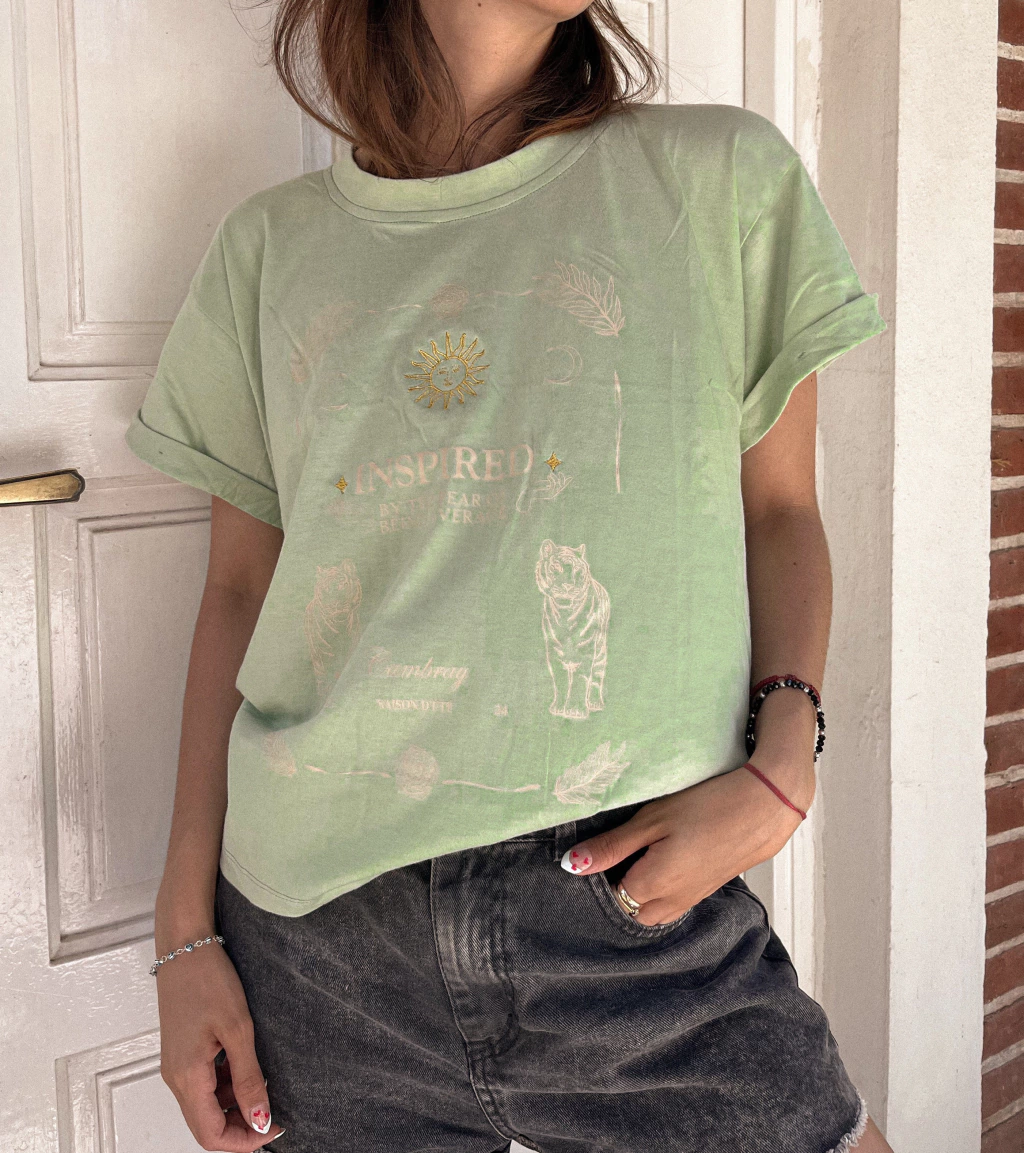 No es cualquier remera! Remera de jersey 24/1, 100% algodón (Lavar a mano con agua fría). Estampada en serigrafía al agua realizada manualmente y con un bordado de hilo de lurex por encima, cómoda y canchera, no falla!